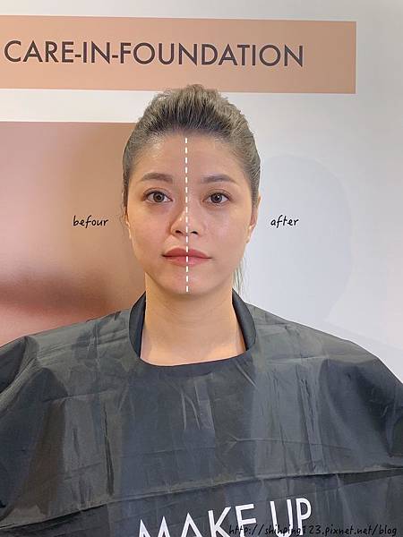 左右比對,很明顯右邊膚色提亮、緊緻、膚色均勻,